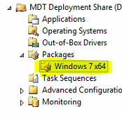 3. Go to DeploymentShare –> Packages and create a folder called “Windows 7 x64”