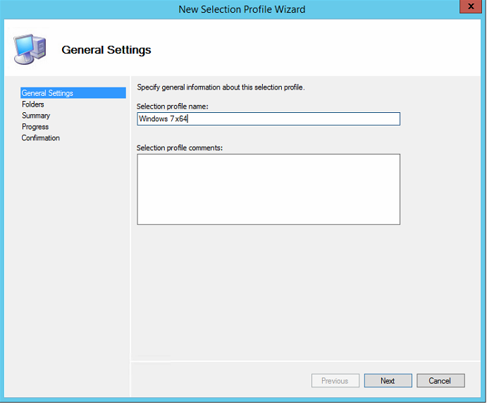 5. Go to: DeploymentShare –> Advanced Configuration –> Selection Profiles. Right click choose “New Selection Profile”