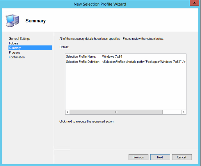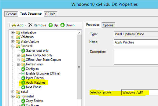 6. Edit your task sequence and make sure the you have selected “All Packages” or “Windows 7 x64” in this step: Preinstall –> Apply Patches –> Selection profile