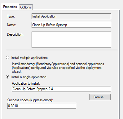 1. Download “Action-CleanupBeforeSysprep-2_4.wsf” and create an application in MDT